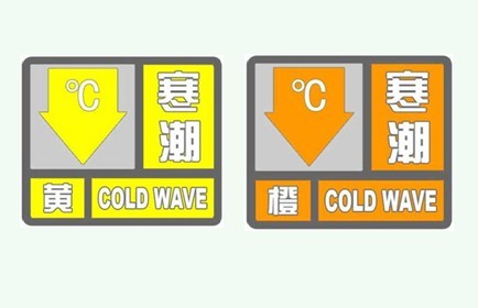 (三)寒潮橙色预警信号标准: 24小时内最低气温将要下降12℃以上,最低气温小于等于0℃,陆地平均风力可达6级以上;或者已经下降12℃以上,最低气温小于等于0℃,平均风力达6级以上,并可能持续。