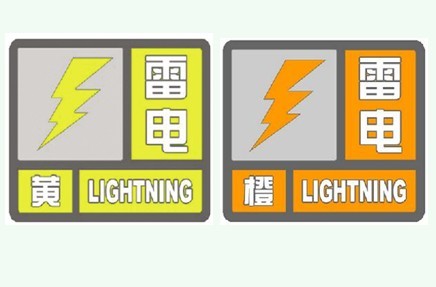 雷电预警信号分三级,分别以黄色、橙色、红色表示。