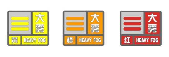 大雾预警信号分三级,分别以黄色、橙色、红色表示。